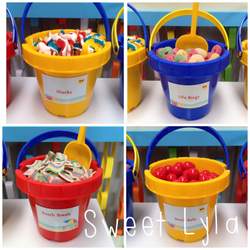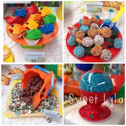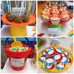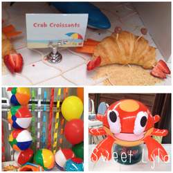 Crab Cupcakes, Fish Cupcakes, Chocolate Fish Marshmallows, Clam Shell Biscuits, Beach Ball Biscuits, Chocolate Cake Pops, Chocolate Rocks, Fish Candy, Large Jaffas as Beach Balls, Sour straps as Beach Towels, Gummy Sharks, Fruit Rings as Life Saver rings, Crab Crossiants