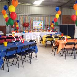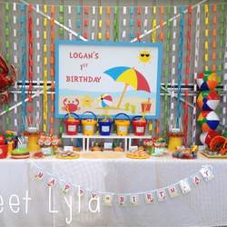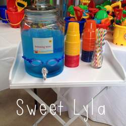 This party was for approx. 70 people. A fun and colourful theme. There was a huge sea-life jumping castle, specially built sand pit and a surf board simulator to keep kids and adults entertained.
